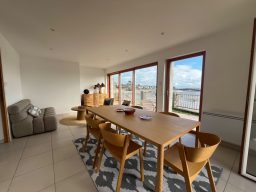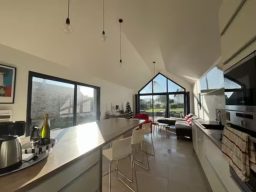 3 chambres, chacune avec sa salle de bain attenante. Les espaces de vie sont ouverts, tournés vers le jardin. la vue dégagée sur le phare est un spectacle à part entière