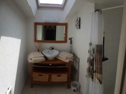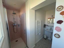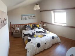 A l'étage, une chambre avec grand lit, une autre avec2 lits 90*190. A l'extérieur, vous disposerez d'un jardin avec terrasse vue mer. A pied ou à vélo, un séjour inoubliable vous attend