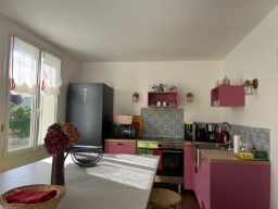 au RDC lumineux séjour-cuisine, 2lits 140*190 , une salle de douche A l'étage salon avec cheminée 1 Bureau pour le télétravail, une chambre avec lit 160x200 et SDB